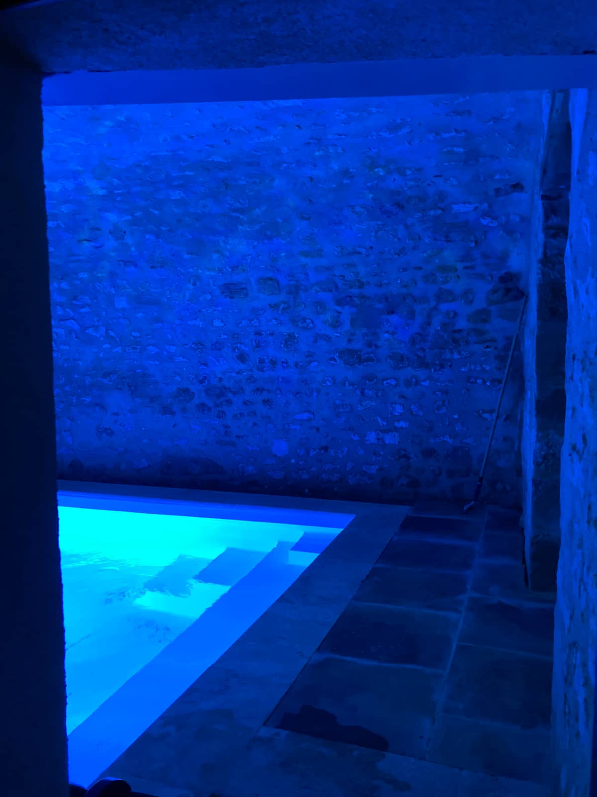 Une mini piscine intérieure chauffée à 27°C avec un accès par la maison et la cour fermant à clé.